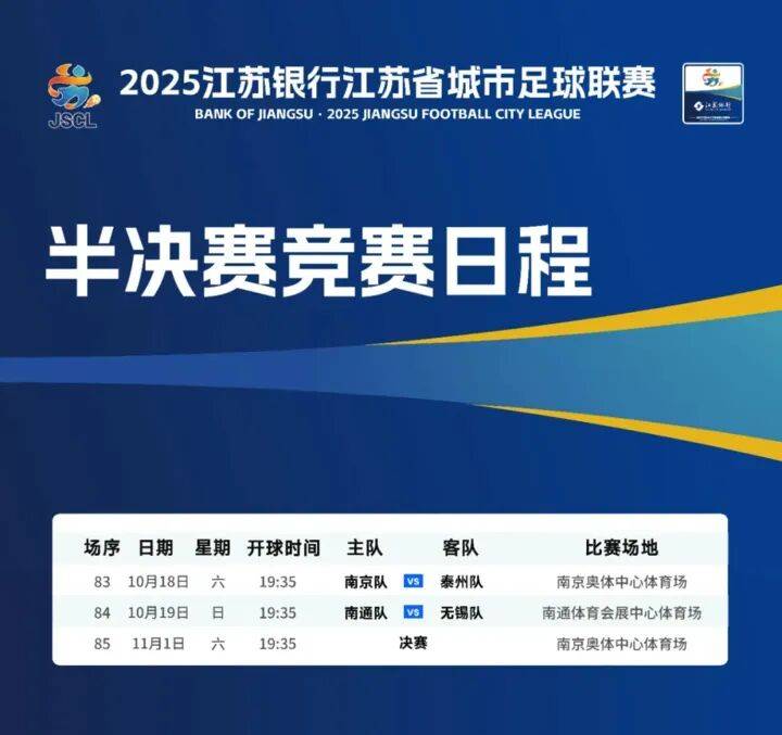 本周末,苏超将迎来半决赛,10月18日南京队VS泰州队,10月19日南通队VS无锡队。