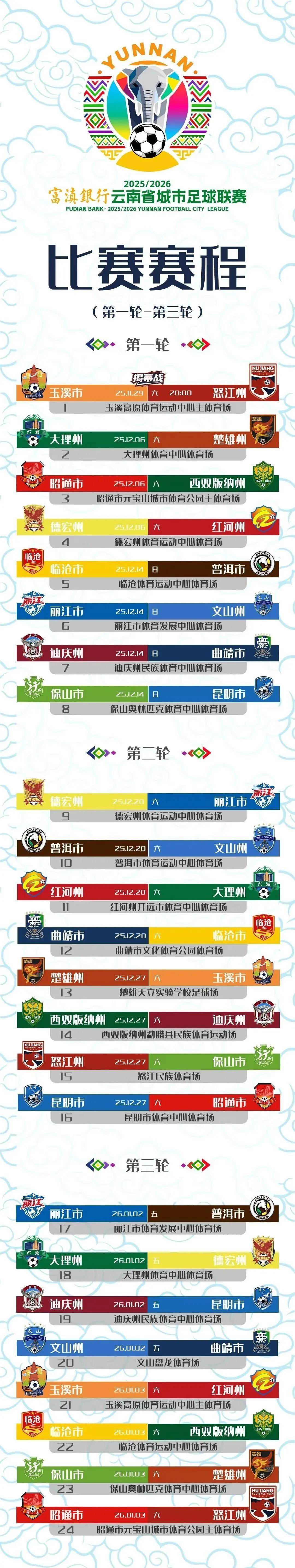 值得注意的是,滇超联赛的揭幕战门票即将开售!11月21日11时29分准时开抢,赛事的第1至3轮赛程也已正式发布。别错过这场精彩的足球盛宴!