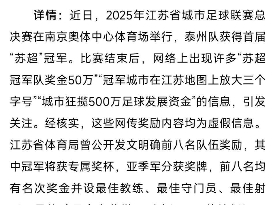 事实上,一些人为了博取流量,刻意将苏超“神化”,编造各种不实信息。对此,赛事主办方选择用实力回应,远离这些“造神”陷阱。