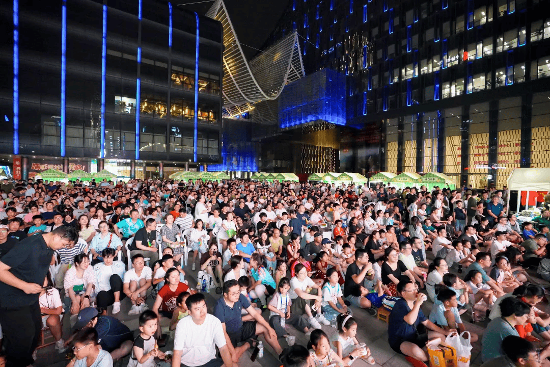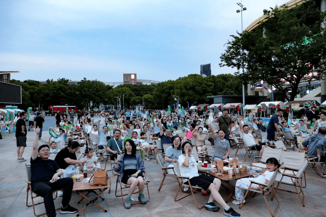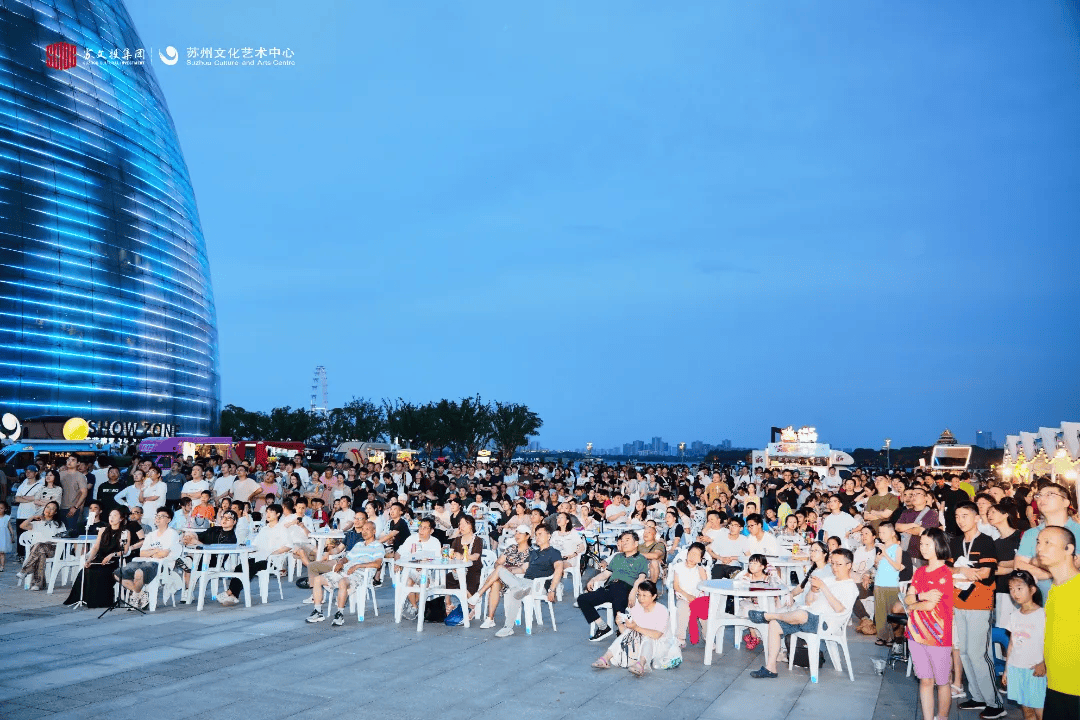 晚上7点,比赛哨声响起。广场上瞬间爆发出阵阵欢呼。在园区,这样的“第二现场”不止一处——现代传媒广场、苏州文化艺术中心湖滨广场同样人头攒动。夜市集美食、观赛、互动于一体,让足球的激情从赛场延伸至街头。