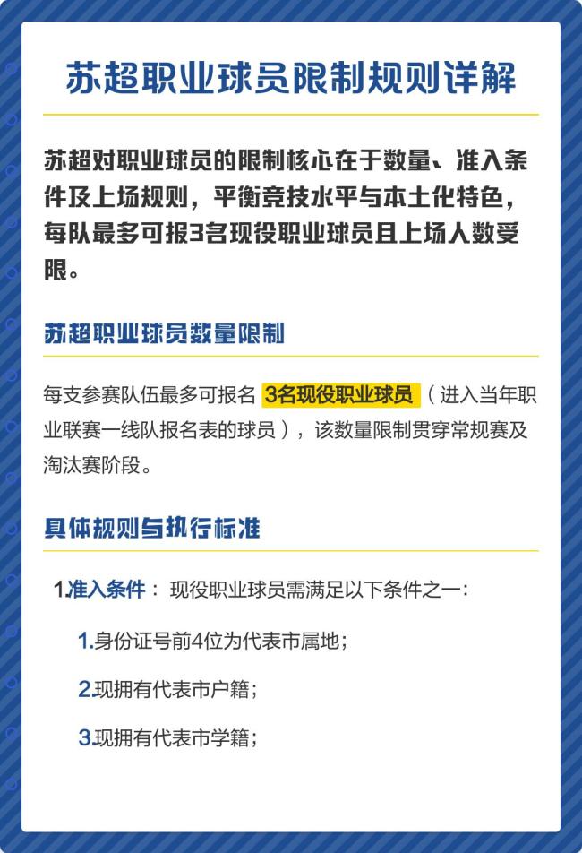 主办方的初衷,实则是让职业球员提升比赛的观赏性。江苏省足协竞赛部部长刘国祥认为:“允许现役职业球员参加业余比赛,应该算是这次‘苏超’的一个突破。”他表示:“我们要求每个球队不能超过3名职业球员,刚好差不多就是一条中轴线,就是为了保障观赏性和公平性。”在他看来,职业球员的加入并不会影响观赏性,但人数过多可能会打破球队间的实力平衡,进而影响联赛的长期发展。