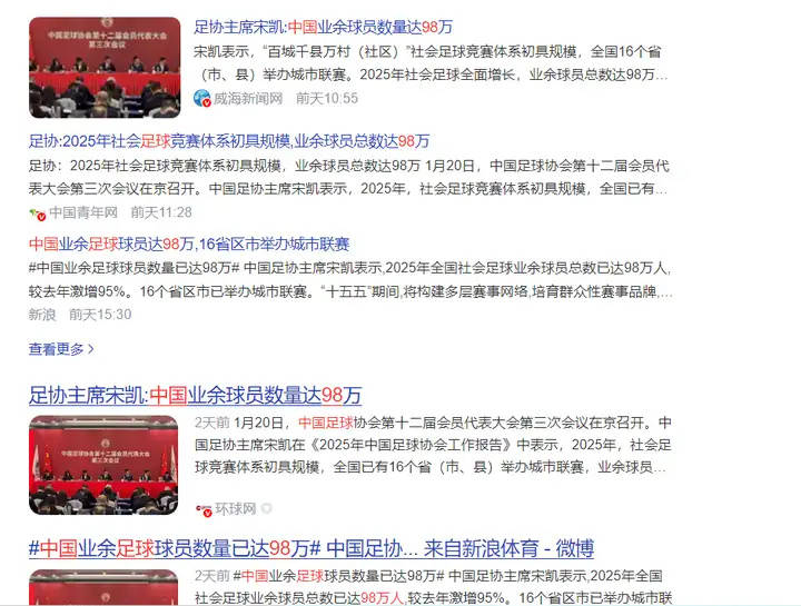 前段时间,中国足协颁布了一个数据,就是业余足球的从业人员数量比起之前翻了几倍,达到了98万人。