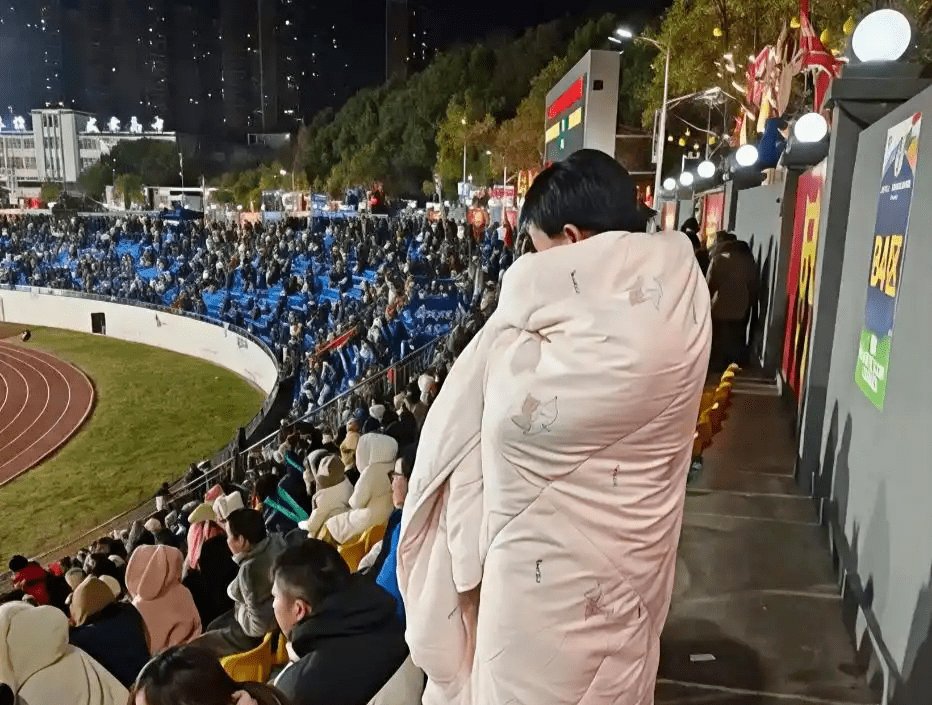 1月20日晚,内蒙古呼和浩特队对阵青海玉树队,永州市体育场内的气温降至-1℃。一位永州球迷裹着棉被在看台上看比赛的视频,刷爆了朋友圈。
