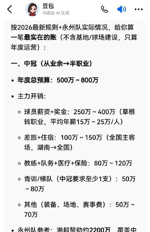 现在的永州队,就像是一个刚考上名牌大学的穷孩子。通知书(实力)是拿到了,全家(球迷)都高兴,但家长(资方/官方)看着那高昂的学费和生活费,手里攥着那点积蓄,犹豫了。